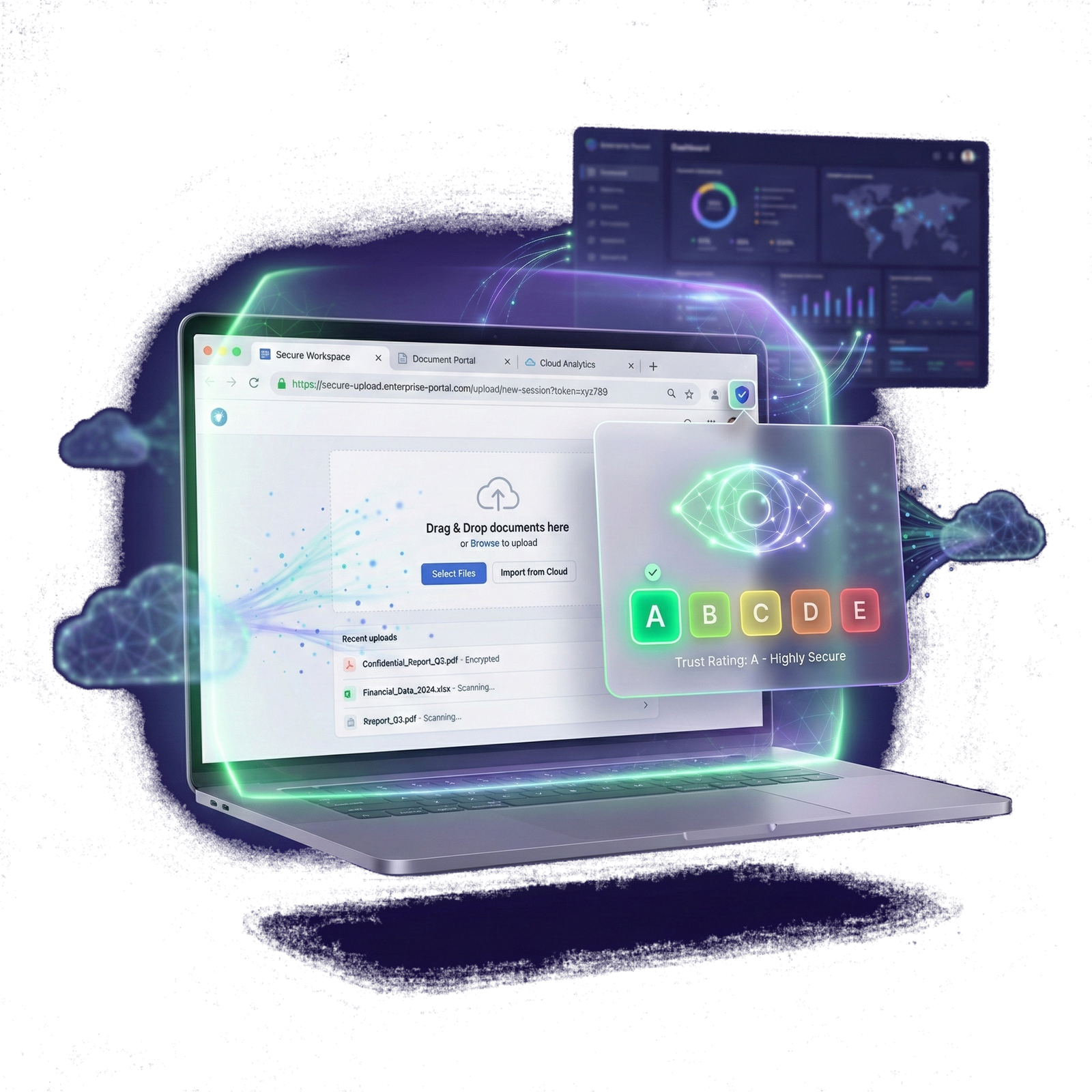 L'extension navigateur affiche en temps réel un niveau de confiance du service consulté. Le collaborateur sait immédiatement si le service présente un risque avant de partager un document.