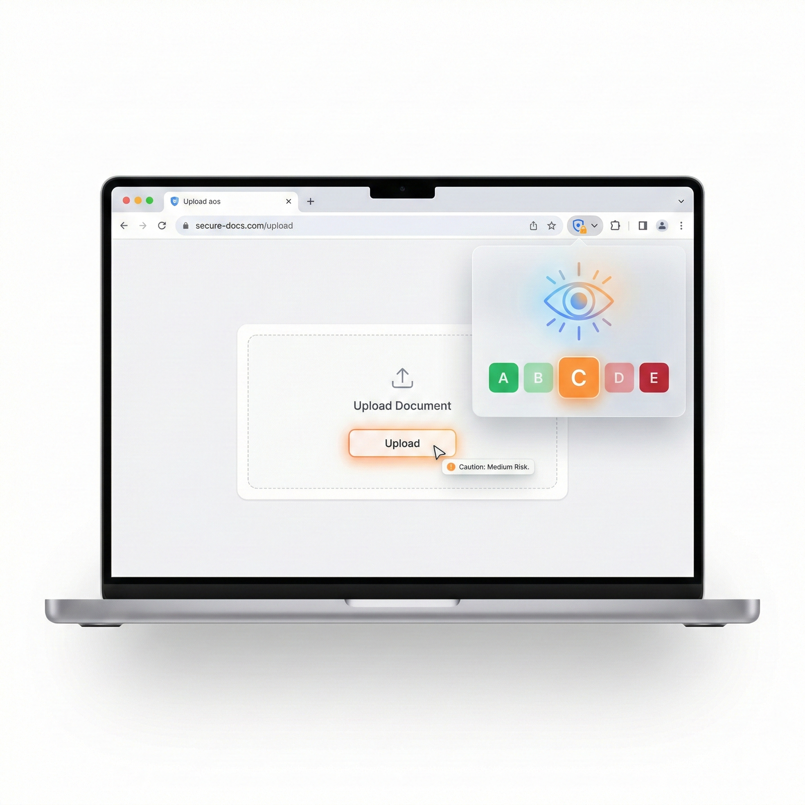L'extension navigateur affiche en temps réel un niveau de confiance du service consulté. Le collaborateur sait immédiatement si le service présente un risque avant de partager un document.