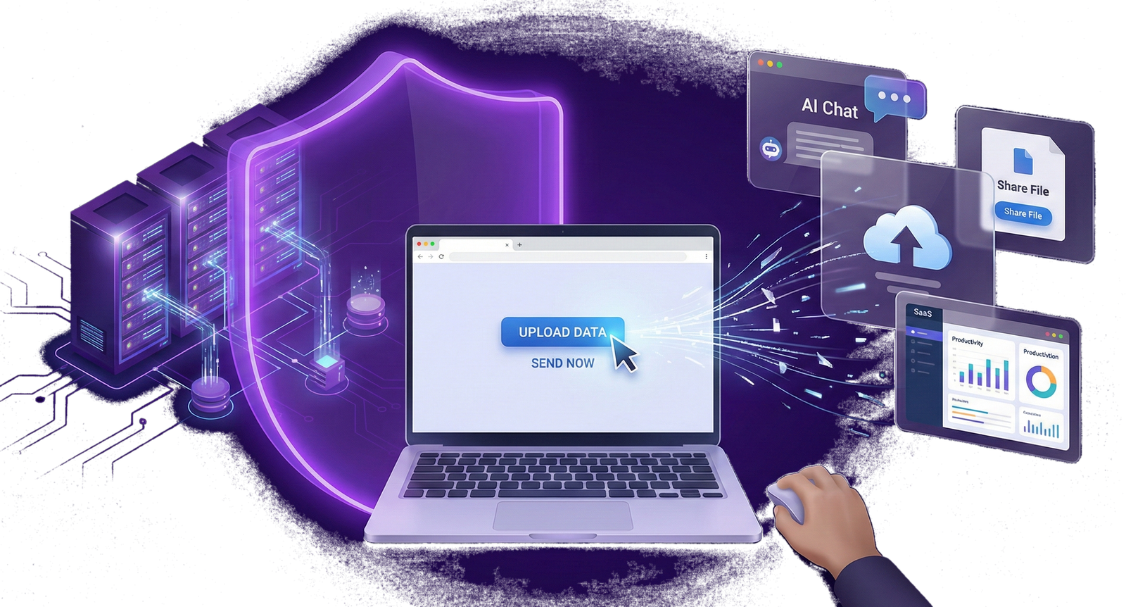 Chaque jour, vos collaborateurs utilisent des services web et des IA avec des données internes. Sans visibilité et sans alerte, votre organisation reste exposée. Data Score rend ces usages visibles et guide l'utilisateur au moment précis où le risque apparaît.